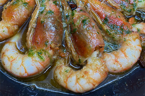• Omplepanxes (gamba vermella, a la llauna, preu per persona)
