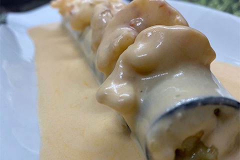 • Maxi caneló de marisc amb crema suau de gambó