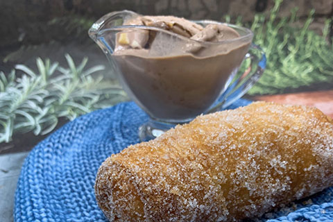• Bunyol de xocolata cruixent amb cor líquid i gelat de vainilla (preu/uni.)